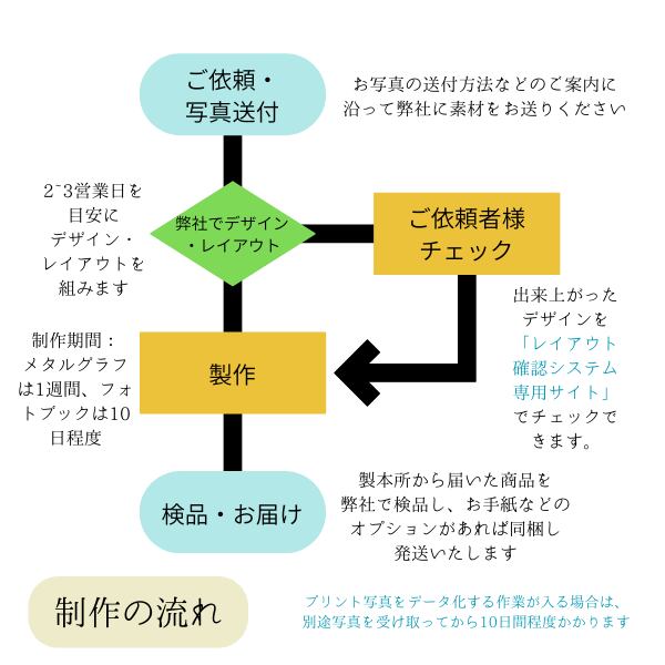 ※お写真をお預かりして3営業日を目安にデザイン・レイアウトを組みます。デザインチェックをしていただいてから2週間を目安にお届けいたします
